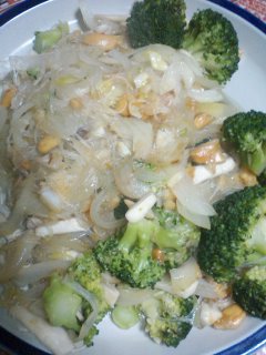 野菜は玉ねぎ、ブロッコリー、あとはエリンギと春雨