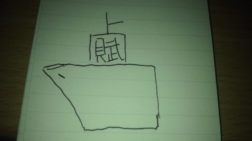 船を描いて、上の四角に書いてある文字は