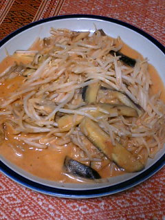 もやし、なす、舞茸を市販のトマトソースで炒めたんですけど
