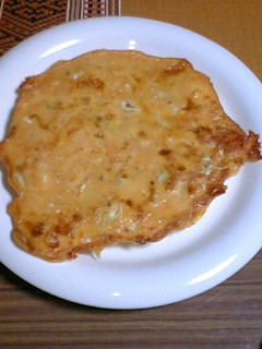 生地には、かつおダシと梅昆布茶を入れるから、ちょっと味付いてるかもしれないけど